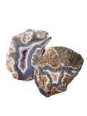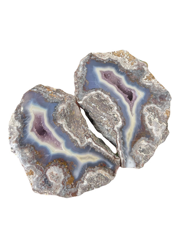این ژئود طبیعی بینظیر از دل زمین استخراج شده و با برشی حرفهای به دو نیمه تقسیم شده است. بافت داخلی آن شامل لایههای مواج عقیق شجر با رنگهای خاص بنفش، خاکستری و سفید است که در مرکز آن کریستالهای درخشان آمتیست خودنمایی میکنند.