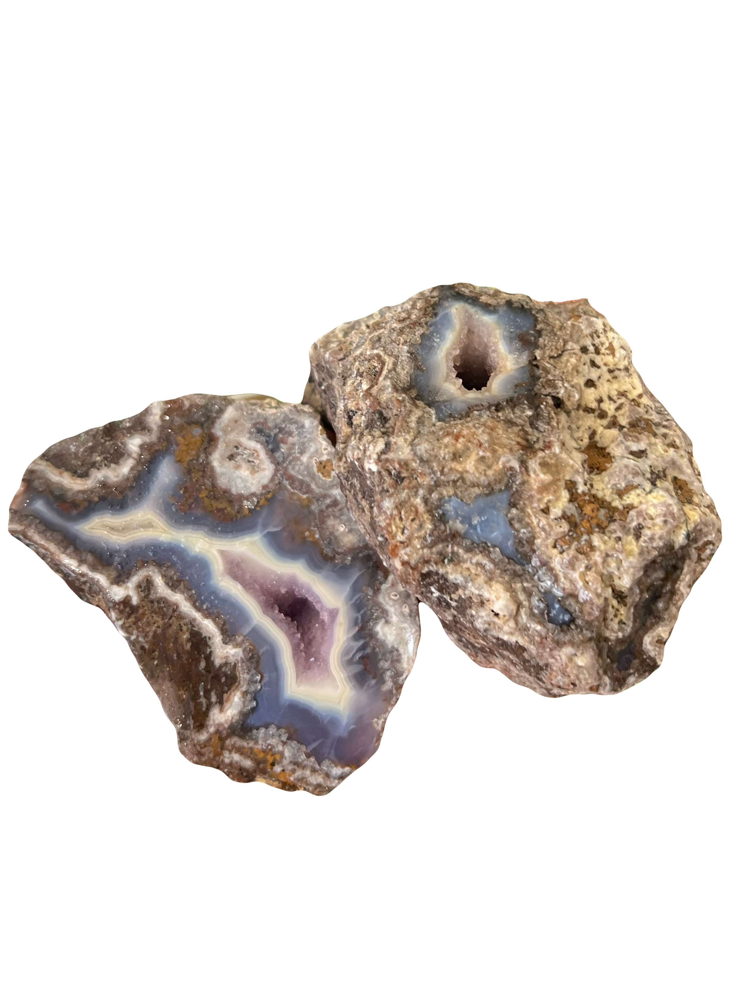 این ژئود طبیعی بینظیر از دل زمین استخراج شده و با برشی حرفهای به دو نیمه تقسیم شده است. بافت داخلی آن شامل لایههای مواج عقیق شجر با رنگهای خاص بنفش، خاکستری و سفید است که در مرکز آن کریستالهای درخشان آمتیست خودنمایی میکنند.